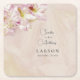 Uma elegante porta copos de casamento floral rosa com azaleas. Esta porta copos faz parte de um convite de casamento completo.