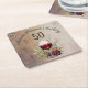 Vidro Vidro Vermelho Azeitolor 50ª Porta copos de Papel de Aniversário. O design tem vinho tinto de cor aquosa e galhos de azeitona e azeitonas com uma textura rústica de pedra. O texto é totalmente personalizável. Porta copos de aniversário elegante e rústica para uma mulher ou um homem.