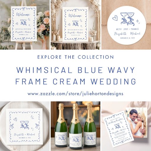 Porta-copo De Papel Quadrado Whimsical Blue Wavy Frame Wedding