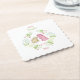 Soft pink and green baby shower coaster with rabbit and wreath. Personalize name and year.