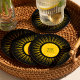 Yellow sun with black circle Total Solar Eclipse personalized with your text - name, date, and place keepsake souvenir drink coaster.