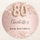 Elegante, clássico, glamouroso para uma festa de aniversário 80. Rosa dourado e fundo de gradiente de descarga. Decorado com rosa dourado confetti. Personalize e adicione um nome. O nome é escrito com um moderno e escuro estilo escrito à mão, com rosa. O número 80 é gravado com uma fonte no estilo do balão.