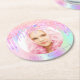 Porta-copo De Papel Redondo Aniversário, brilho do arco-íris goteja foto perso