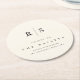 Uma elegante design de porta copos de casamento monograma com suas iniciais, nomes e data de casamento em letras negras em um fundo quente de marfim. O texto "Anime-se a [Name}" torna este estilo perfeitamente adequado à configuração da hora do cocktail ou do bar.