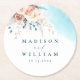 Melhore seu casamento de destino de praia com essas Portas copos de Papel Redondo de Casamento de Praia. Apresentando uma impressionante design de aquarela em azul, lacre, turquesa e pêssego, com delicados sotaques florais, eles oferecem uma combinação perfeita de estilo boho e elegância costeira moderna. Estas portas copos acrescentam um toque na moda e funcional à sua celebração enquanto refletem a beleza serena do seu lugar à beira-mar.