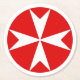 Porta-copo De Papel Redondo Cross Of Malta v2 (branco a vermelho)