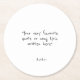 Celebrate a birthday party, anniversary, graduation or any special event with these custom quote paper coasters. Adds a touch of personalisation that guests will love! Add any quote, chant, song lyrics, bible verse or reference of your choice! This design features minimalist customizable text in simple, hand-written typography.