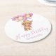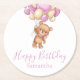 Porta-copo De Papel Redondo Feliz Aniversário, Garota Rosa Feliz