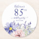Porta-copo De Papel Redondo Festa de aniversário 85ª Floral Púrpura Elegante