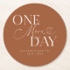 Porta copos de ensaio de casamento minimalista, com texto tipográfico que diz "mais um dia." O fundo é terracota.