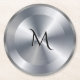 Revamp your drinking accessories with our stunning coaster design, showcasing a shiny metallic silver, stainless steel look with a customizable monogram.