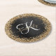 Porta-copo De Papel Redondo Monograma Dourado de brilho preto com brilho perso