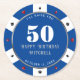 Legal, azul, branco, vermelho e cinza chip de pôquer 50ª porta copos de festa de aniversário. Personalize-o com os detalhes do evento.