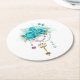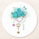 Porta-copo De Papel Redondo Rosas Turquesas com Chaves