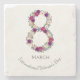 Dia Internacional da Mulher, 8 de março, design com o número 8 em arranjo floral e texto