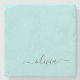 Porta-copo De Pedra Aqua Blue Teal Modern Script Girly Monographic Nam