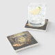 Porta copos de pedra de design único com imagem impressa de uma pintura acrílica de um rei antigo com três velas brilhantes.
