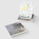 Um conjunto de portas copos de pedra com uma fotografia de bombeiros a combater um incêndio na casa.