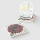 Proteja a sua mesa de marcas de água e manchas com esta montanha-russa decorativa, de pedra, com cobertura de cortiça que apresenta a foto de uma linda e escura florada Dahlia vermelha. Um design floral adorável! Selecione o estilo de pedra de porta copos.