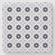 A decorative pillow featuring a symmetrical geometric pattern with blue, white, and brown hues shown from the front and back on a gray background.