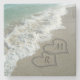 Elegante Sand Hearts escrito na Praia como bom símbolo de um Casamento de Destino ou férias de viagem de lua de mel tropical. Linda imagem cênica de água aqua turquesa oceânica clara, com ondas brancas caindo na praia de areia bronzeada. Dois corações encrencados simbolizam o amor eterno, até mesmo coloquem suas iniciais personalizadas primeiro ou sobrenome dentro os corações!