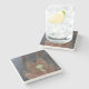 Uma porta copos de pedra com uma foto de esquilo.