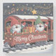 Porta copos Musical Express de Pedra Musical Jolly Gnomos. Dois gnomos andam no trem de Natal, presentes empilhados ao redor deles. Eles picam caróis fora da chave, trocando letras para receitas de biscoitos, enquanto os outros passageiros riem e se juntam ao caos alegre e sintonizado.