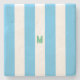As portas copos personalizadas perfeitas de estrias de cabana para as suas bebidas de verão... cabana azul-céu listrava com monograma verde. Personalize com sua própria inicial. Acessórios correspondentes disponíveis em nossa coleção mínima de distribuição de Cabana monograma.