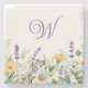 O fundo apresenta flores de aquarela mistas e verde em branco. As cores principais são branco, verde, roxo e ouro amarelo. A adorável cor da letra decorativa do monograma está definida para corresponder à lavanda roxa.