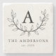 Elegantes porta-copos de pedra botânicos com o seu monograma inicial rodeado por uma vinha de folhas com o seu apelido e o ano exibidos abaixo. Os porta-copos monogramados são o presente perfeito para um noivado, casamento ou Natal!