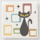 Ilustração colorida do estilo do Meio século abstrato com gato preto, estrelas pretas e ornamentação colorida em fundo branco. Você pode adicionar seu nome/monograma para personalizar o item.