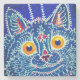 Porta copos de pedra com a pintura animal de Louis Wain A Cat em estilo gótico (1860-1939). Um gato azul psíquico olha amigavelmente com os olhos amarelos para o espectador. Um presente maravilhoso para amantes de gatos e arte inglesa.