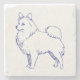 Klassisches Design in Blau-Weiß. Blaue Linienzeichnung der Hunderasse Spitz auf weißem Untergrund.