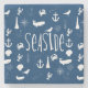 Tipografia com âncoras, baleias, conchas e muito mais em porta copos azul-marinho e de pedra branca