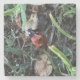 Uma porta copos de bebida com uma foto de um inseto de senhora.