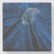 Esta design apresenta uma bela imagem de uma lua de cheio atrás de árvores altas. O céu é azul escuro.