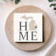 A porta copos da bebida de na moda apresenta um design de tipografia com texto "Home" e mapa do estado de Michigan. O marcador da cidade do coração azul marinho pode ser posicionado sobre a cidade onde você mora via Personalizar. Preto suave neutro / onyx, bege e branco.