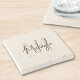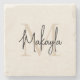 This stone coaster features a modern, elegant monogram and name in stylish script calligraphy on a neutral beige background. It is easily customizable. Makes a perfect housewarming gift or a gift for a friend.