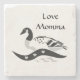 Mamãe ficou nadando, o design foi feito em escala de cinzas com estilo de arte vetorial. Na base do ganso canadense acena com três corações amorosos.