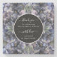 A bold and sophisticated Stone Coaster featuring dramatic dusty blue and grey floral illustrations against a stark black background. The crisp white typography and classic layout set an elegant, moody tone. Perfect for a formal evening or a sophisticated wedding.