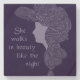 Design cita o famoso poema de Lord Byron, "Ela caminha em beleza, como na noite."