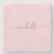 Elegante Chic Modern Dourado Monograma Nome de Assinatura Script Personalizar Porta copos Personalizada de Pedra. Este design com um nome personalizado em uma caligrafia (ou tipografia) de fonte de haste com letra cursiva escrita à mão, em ouro, sobre fundo cor-de-rosa-pino-claro ou cor-de-rosa-bebê. Estes são fáceis de personalizar. presente excelente feminina de lar, casamento, também para aniversário, chá de panela, doce 16 festas de aniversário, dia da mãe e é para a garota que ama coisas na moda únicas.