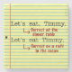 Esta porta copos hilária de pedra para escritores, editores, bibliotecários, professores de inglês e esnobes gramaticais ilustra a importância da pontuação. Quando está ligando para o Timmy jantar, precisa de uma vírgula. Quando estiver planejando canibalizar Timmy em uma jangada salva-vidas, deixe a vírgula para trás. Timmy ficará grato na situação nº 1 - e todos os outros no barco ficarão gratos pela situação nº 2. Seja qual for a situação, você será um membro orgulhoso da polícia gramatical. O fundo parece papel amarelo.