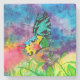 Minha cor de água original colheu e imprimiu em uma porta copos que caracteriza o grupo do arbusto de Omphalea em um fundo brilhante do por do sol visitado por uma traça do por do sol (Chrysiridia Rhipheus), que fossem amba indígenas a Madagascar, África.