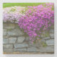 Esta porta copos de pedra apresenta diferentes tons de Phlox rosa batendo sobre uma parede de pedra na Nova Inglaterra