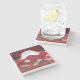 design de paisagem abstrato em vários tons de vermelho com um luar, colinas, árvores, nuvens e aves.
