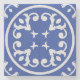 Regal Crest é um design circular refinado, com rolhas simétricas de foliato, radiando em torno de um aglomerado central de formas semelhantes a estrelas. Enquadrada por uma fronteira forte, a composição evoca emblemas heráldicos ou focas nobres. Os padrões de filigrana branca contrastam ousadamente contra o fundo azul rico, dando ao azulejo um eterno e uma presença digna perfeitas para as configurações clássicas ou inspiradas no Mediterrâneo