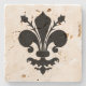 Uma porta copos de pedra com um símbolo preto medieval Fleur de lis impresso nela. A cor ficará mais escura no produto final.