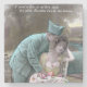 Um cartão postal francês vintage do dominio público com um soldado beijando uma mulher. Seria um presente excelente para Dia de os namorados, dia mais doce, aniversários.