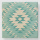 Esta é uma porta copos de bebida com um impressão de uma tecelagem geométrica Navajo sobre ela, projetada em teal. A porta copos está disponível em diversas formas e materiais, como mármore, arenito, calcário e travertino.